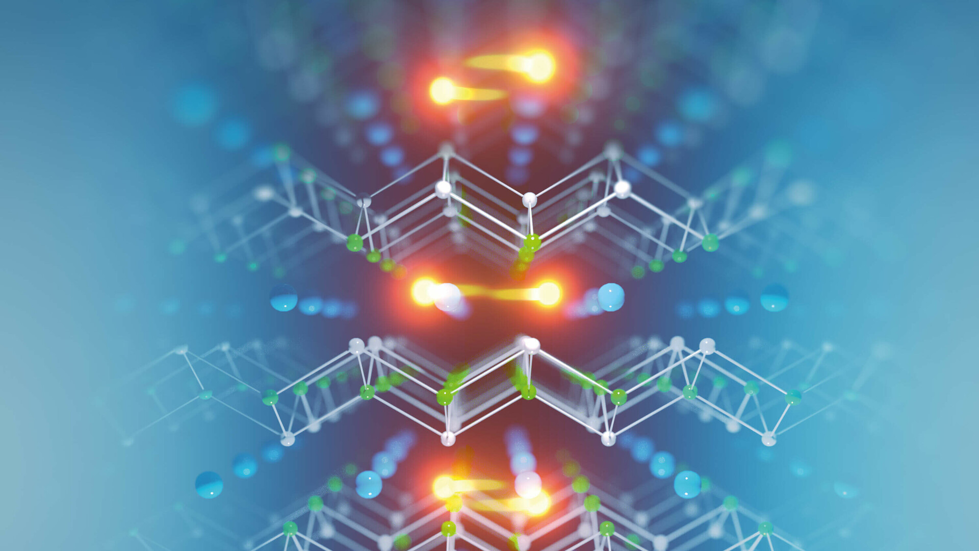 Die Abbildung zeigt das außergewöhnlich robuste Quantenmaterial Cer-Rhodium-Arsen (CeRh2As2), das Elena Hassinger im Exzellenzcluster ct.qmat erforscht. Zwischen den Cer-Atomen (blau) befinden sich Cooper-Paare (gelb). Diese entstehen bei sehr tiefen Temperaturen aus jeweils zwei Elektronen und sind eine Voraussetzung für Supraleitung. Sie können im Kollektiv einen Quantenzustand bilden und sich als elektrischer Strom widerstandsfrei durch den Supraleiter bewegen.