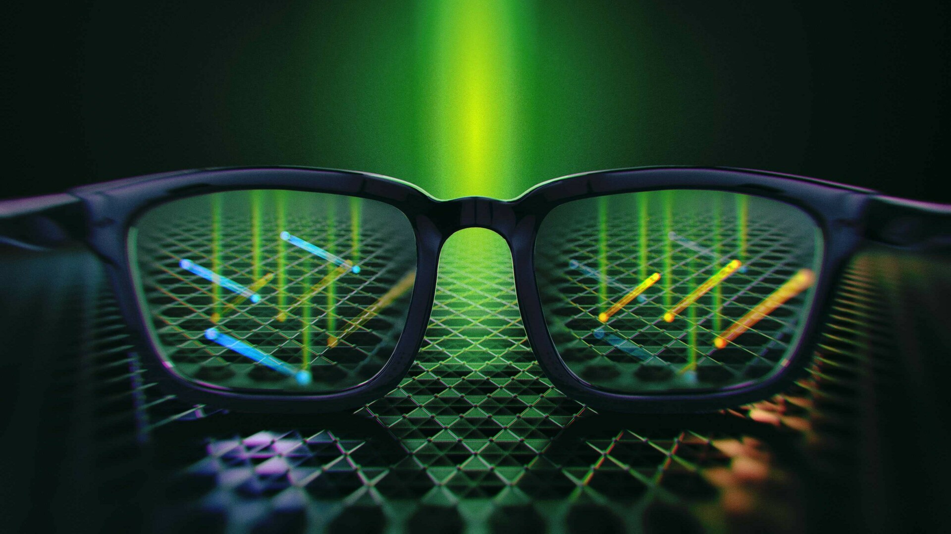 Mit Lichtteilchen (Röntgenstrahlen, im Bild grün) haben Forschende auf dem Kagome-Metall TbV6Sn6 Effekte wie im 3D-Kino erzeugt. So ist es einem internationalen Wissenschaftsteam gemeinsam mit dem Würzburg-Dresdner Exzellenzcluster ct.qmat gelungen, dem Verhalten von Elektronen (im Bild blau und gelb) auf die Spur zu kommen und beim Verständnis von Quantenmaterialien einen Schritt weiter. Dank Photoemission mit zirkular polarisiertem Röntgenlicht konnte der unterschiedliche Drehsinn von Elektronen nachgewiesen werden (blau zum Beispiel rechtsdrehend, gelb linksdrehend). Mit dieser ausgeklügelten Methode konnte die Topologie der Elektronen zum ersten Mal direkt nachgewiesen werden. Bisher wurde dieses Quantenphänomen nur indirekt gemessen.