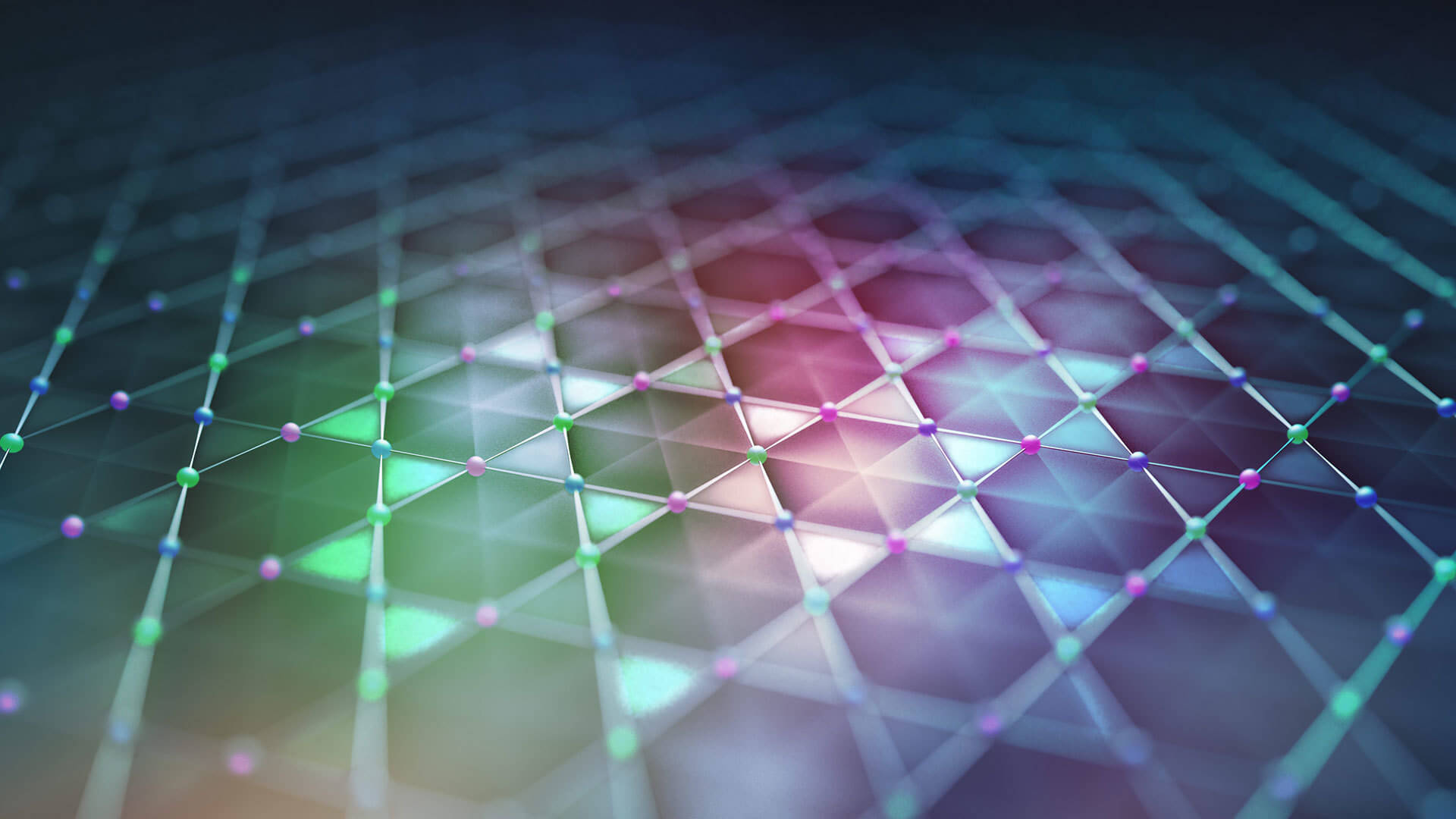 The kagome lattice is composed of three interwoven triangular lattices. For KV3Sb5, each such triangular lattice (denoted red, blue, and green) represent one type of Vanadium sublattice which together form the Kagome metal. The particular kagome lattice structure leads to intriguing quantum effects which yields collective electronic quantum states such as a potentially unprecedented form of superconductivity.